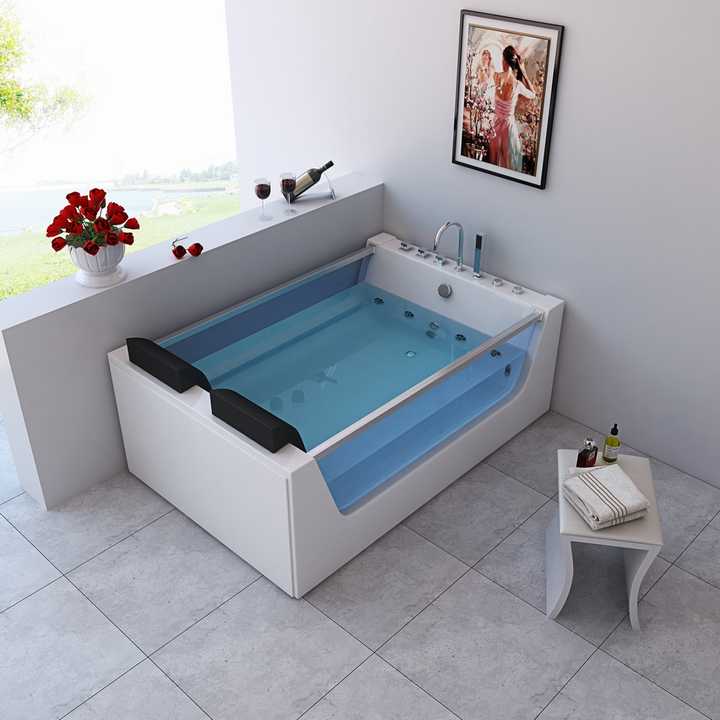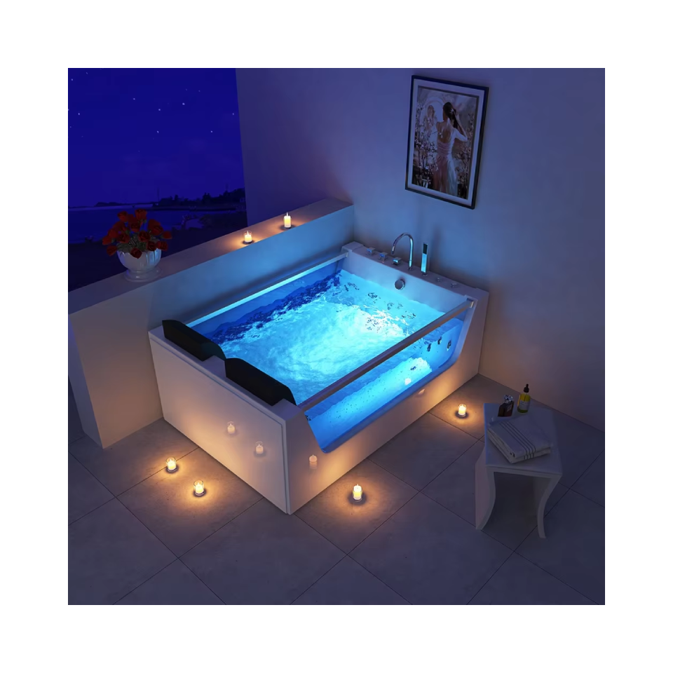 อ่างจากุซซี่ทันสมัย อ่างสปาในร่ม พร้อมระบบนวดด้วยน้ำวน สำหรับ 2 คน รูปทรงสี่เหลี่ยมผืนผ้า เป็นมิตรกับสิ่งแวดล้อม