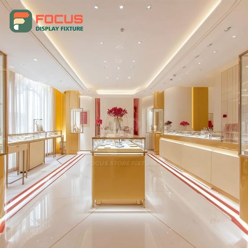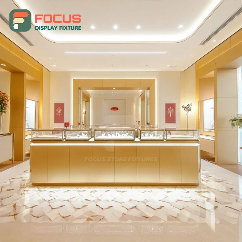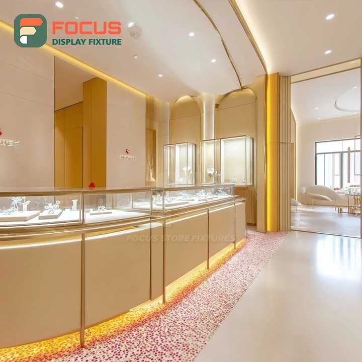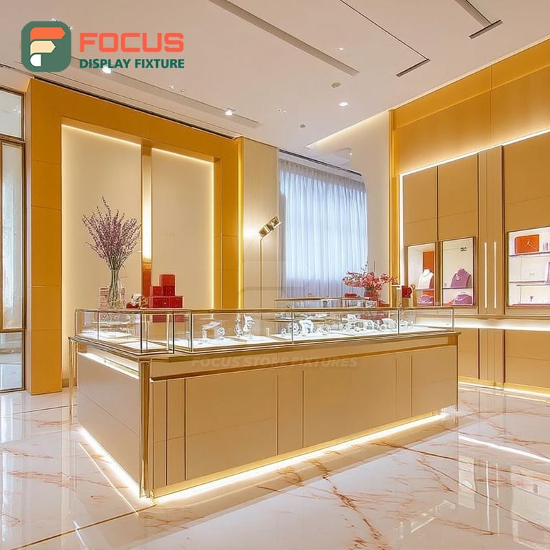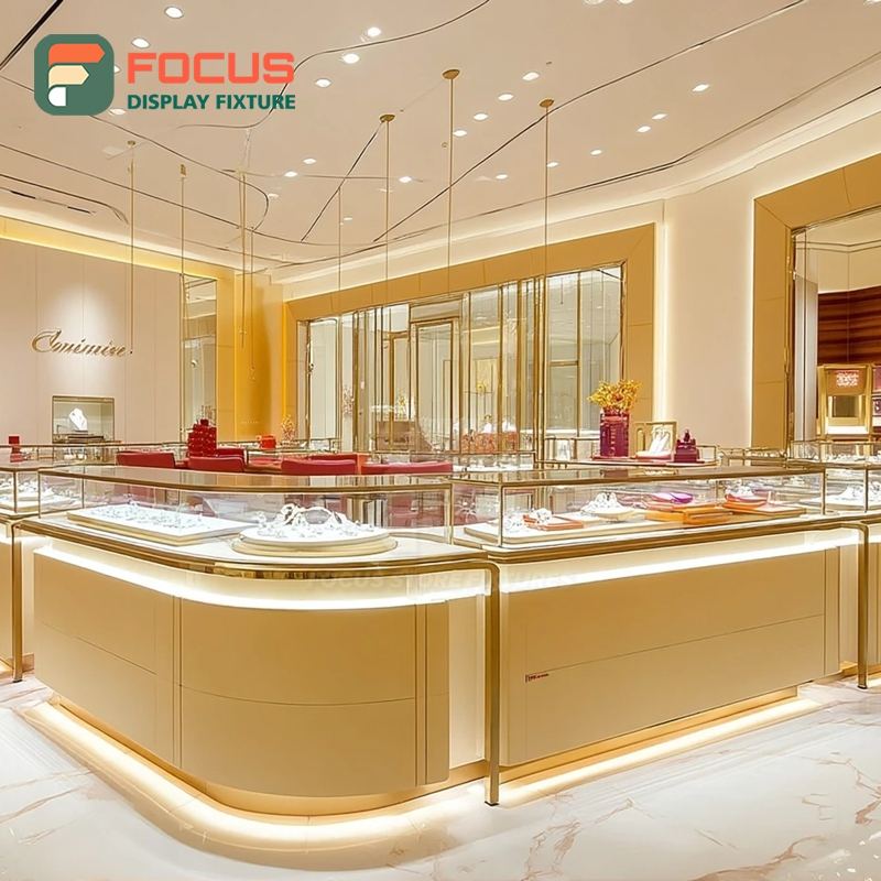 ระบบโชว์สินค้าเครื่องประดับสมัยใหม่ พร้อมเคาน์เตอร์แสดงสินค้าแบบเคลือบผิวสำหรับร้านค้าเชิงพาณิชย์