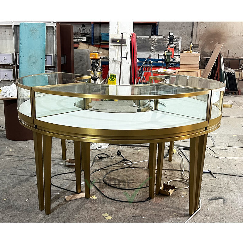 ตู้โชว์เครื่องประดับทันสมัยดีไซน์เฟอร์นิเจอร์กระจกสีทองตู้โชว์เครื่องประดับโชว์รูม