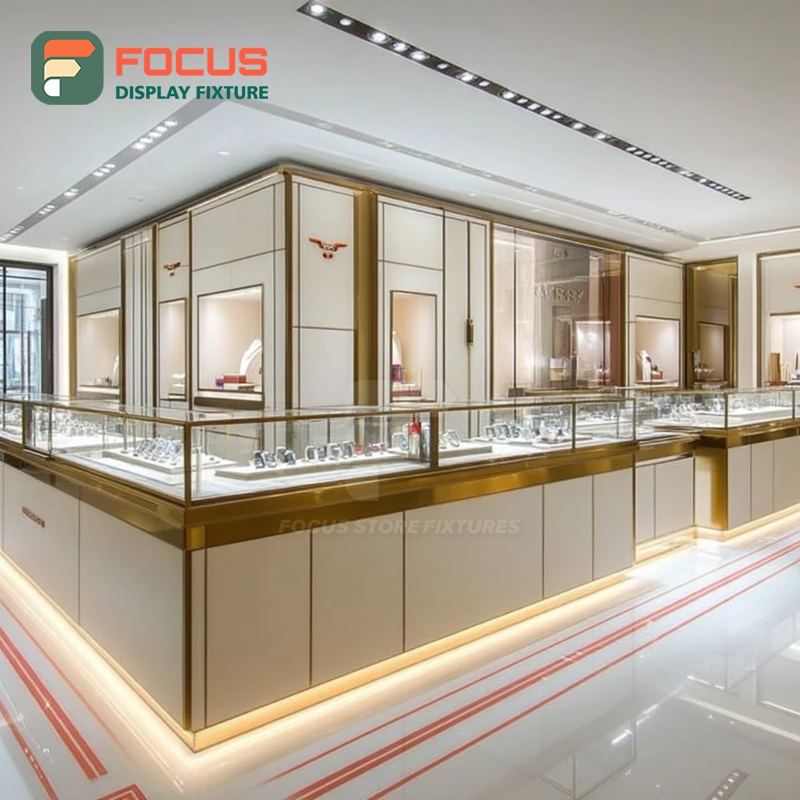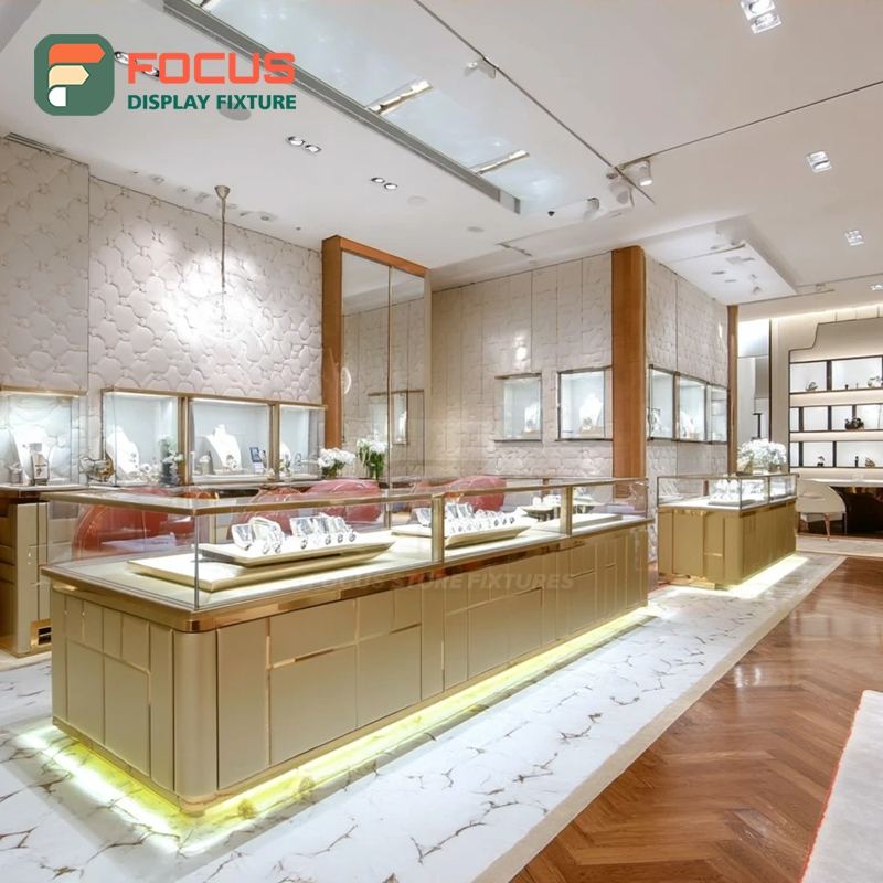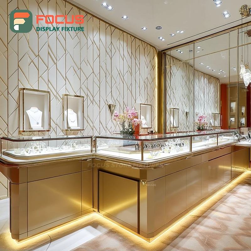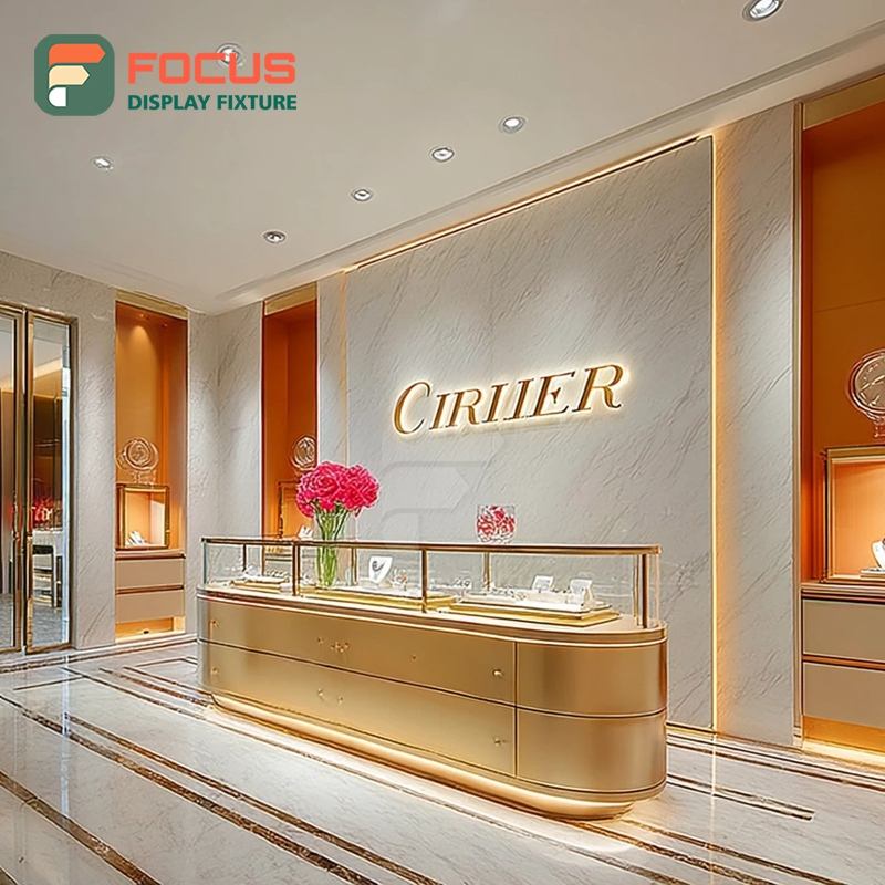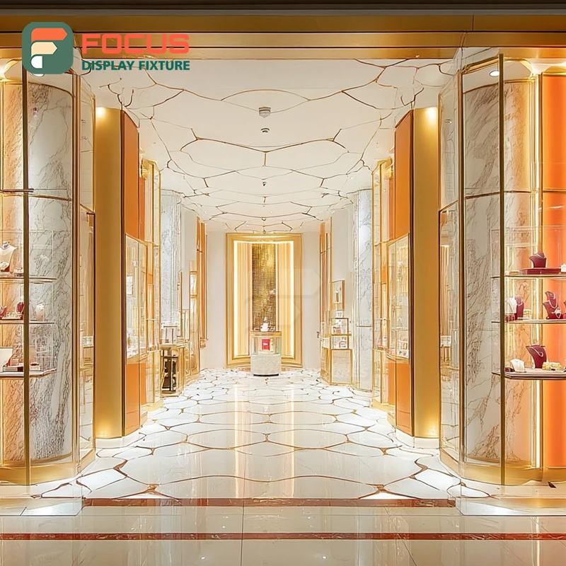 ตู้โชว์ร้านค้าแบรนด์ดังสำหรับจัดแสดงเครื่องประดับสมัยใหม่ ตกแต่งภายในด้วยวัสดุเคลือบเงา