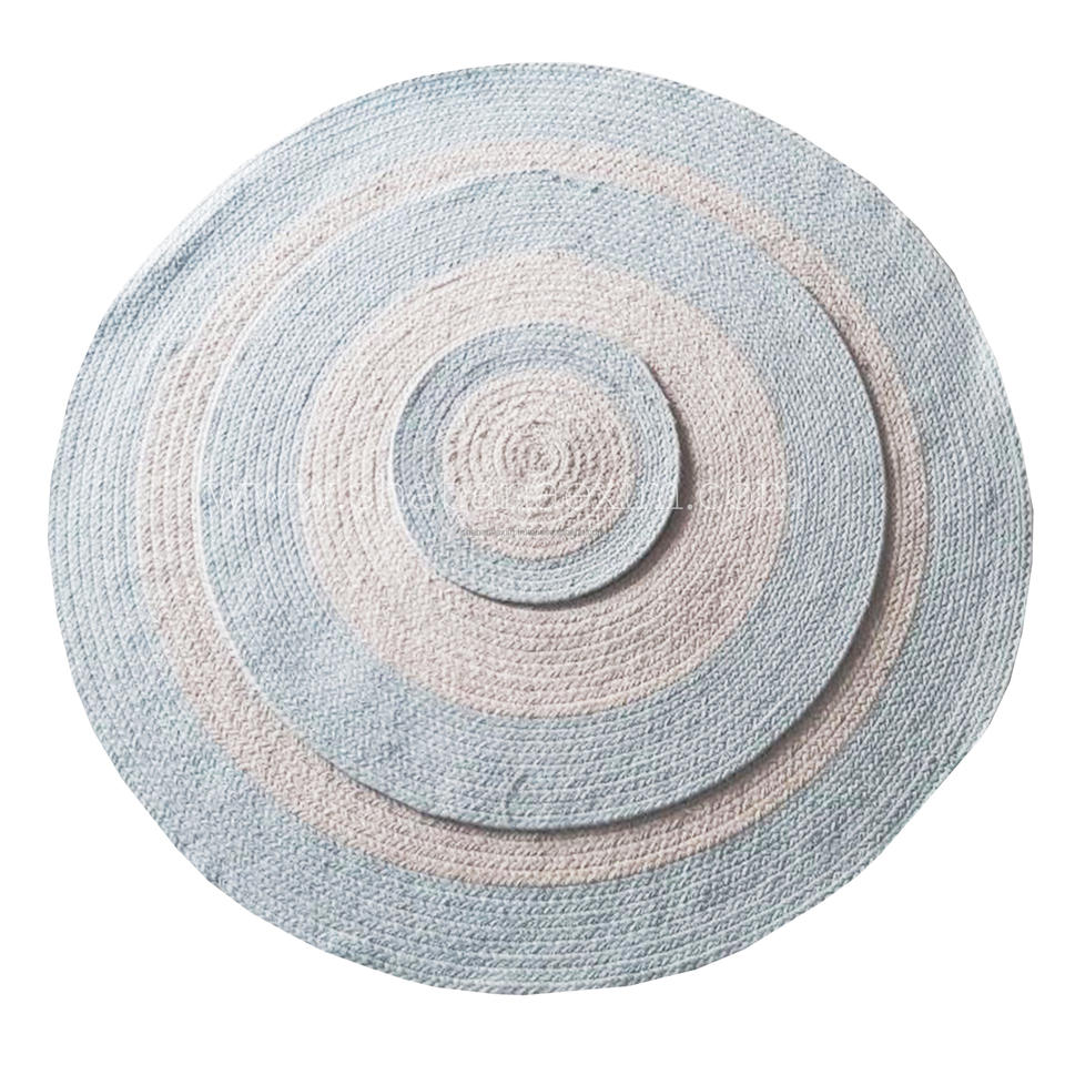 พรมปอกระเจาทรงกลมขนาดใหญ่กลางแจ้งมีการออกแบบที่แตกต่างกันและสีพิมพ์ปอกระเจาถักพรมทรงกลมจากอินเดีย