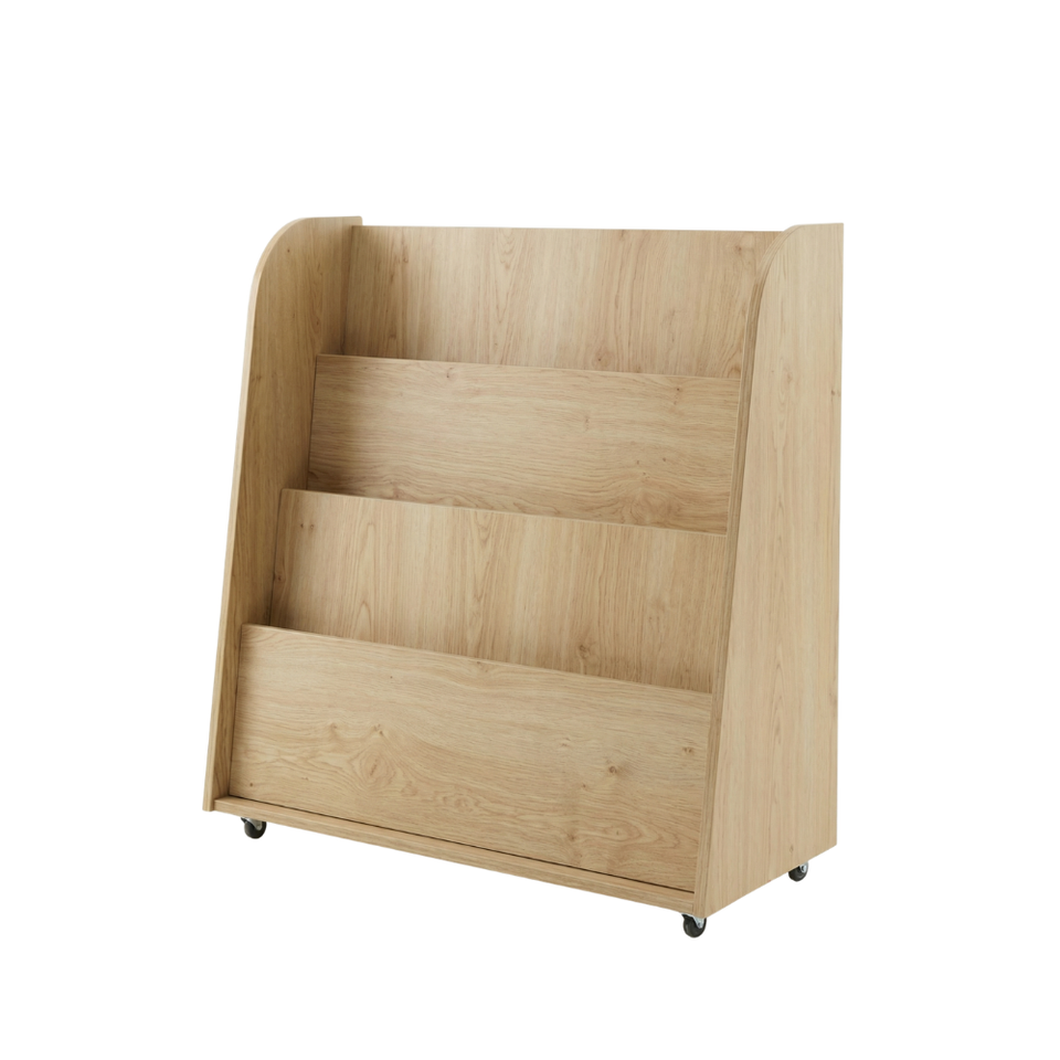 ชั้นวางหนังสือเด็กแบบเคลื่อนที่พร้อมล้อ ชั้นวางของสำหรับเด็กก่อนวัยเรียน ขายส่ง