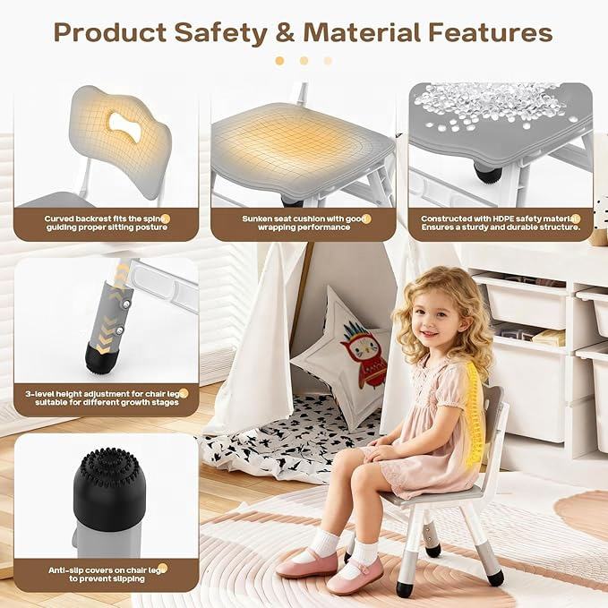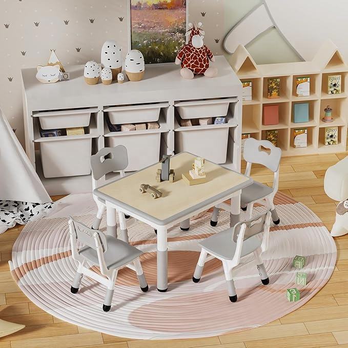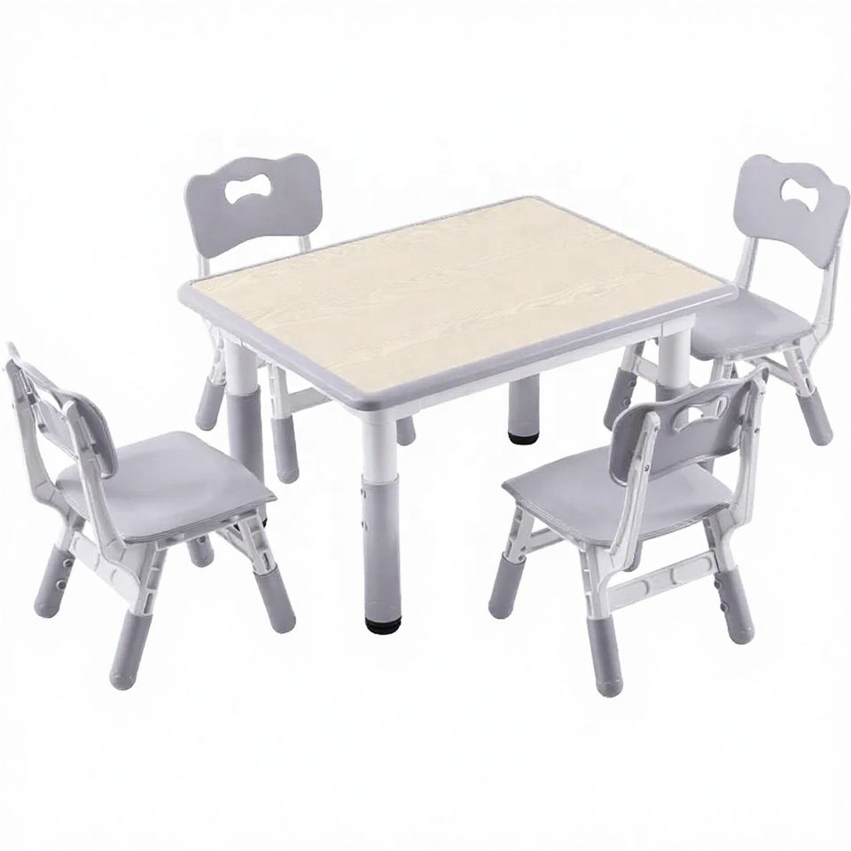 Modern Kids Table and 4 Chairs Set for Preschool Classroom Adjustable Height Plastic Commercial Grade Furniture
