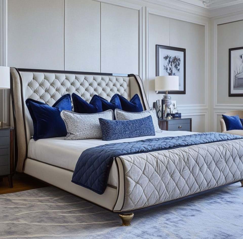 ชุดเฟอร์นิเจอร์ห้องนอนหุ้มเบาะทำจากไม้เนื้อแข็งกรอบเตียงคู่ขนาดคิงไซส์ที่ทันสมัยสำหรับโรงแรม