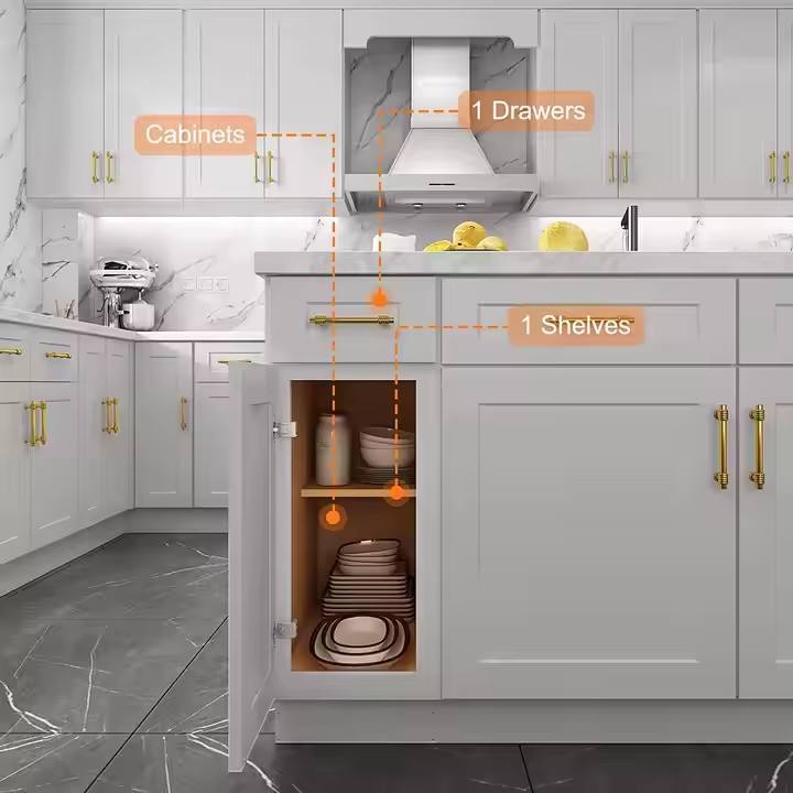 ตู้ฐานห้องครัวทันสมัยตกแต่งไม้บริสุทธ์จากประเทศไทย