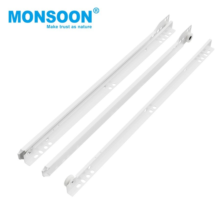 รางลิ้นชักตู้ครัวแบบโมเดิร์น 2 ตอน แบบติดด้านข้าง ล้อไนลอนสีขาวเคลือบผง สำหรับห้องรับประทานอาหาร