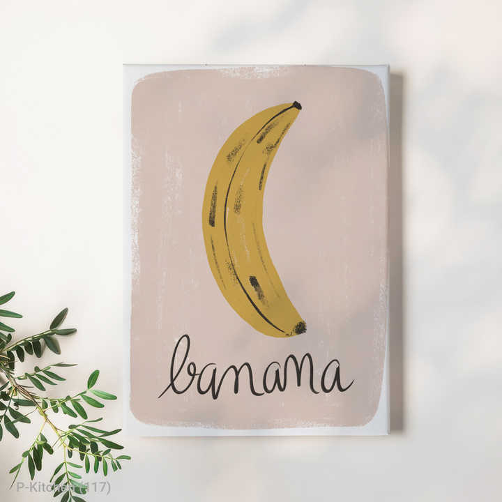 ภาพพิมพ์บนผ้าใบสำหรับตกแต่งห้องครัวสไตล์โมเดิร์น ภาพผลไม้วินเทจแบบมินิมอล กล้วยสีพาสเทล สวยงามน่ารัก ภาพพิมพ์ติดผนังห้องครัว