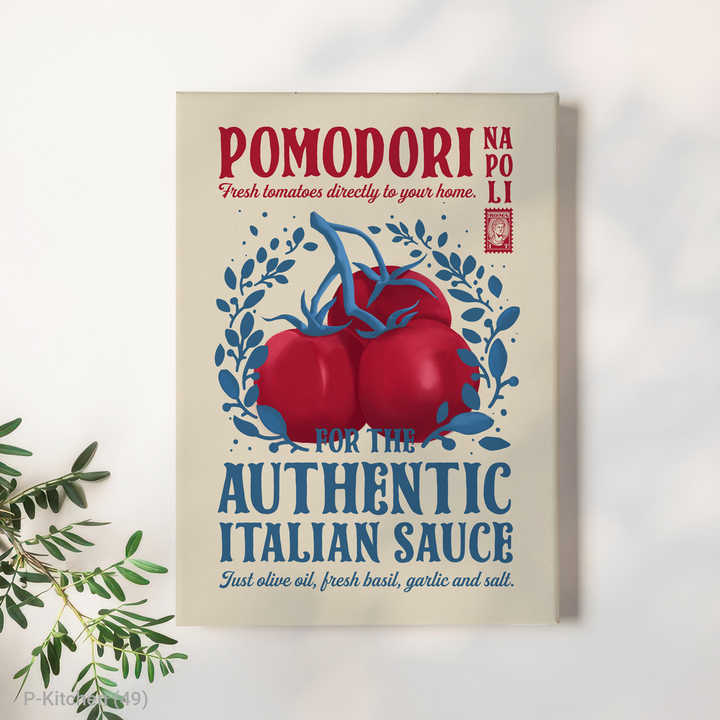 ภาพศิลปะตกแต่งครัวสไตล์วินเทจ ภาพอาหารอิตาเลียนย้อนยุค ภาพวาดมะเขือเทศสีสันสดใสบนผืนผ้าใบสำหรับตกแต่งห้องครัว