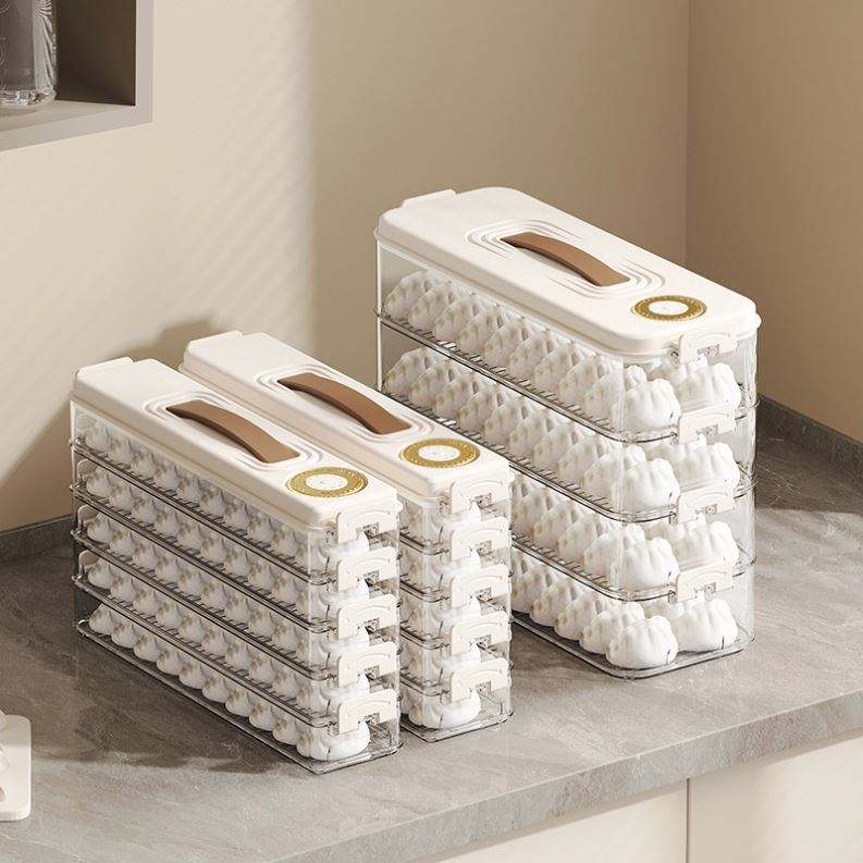 กล่องเก็บอาหารแบบใสสำหรับแช่แข็ง 5 ชั้น วัสดุ PP เกรดสำหรับอาหาร ฝาปิดสำหรับเก็บเกี๊ยว ใช้ในครัวทันสมัย