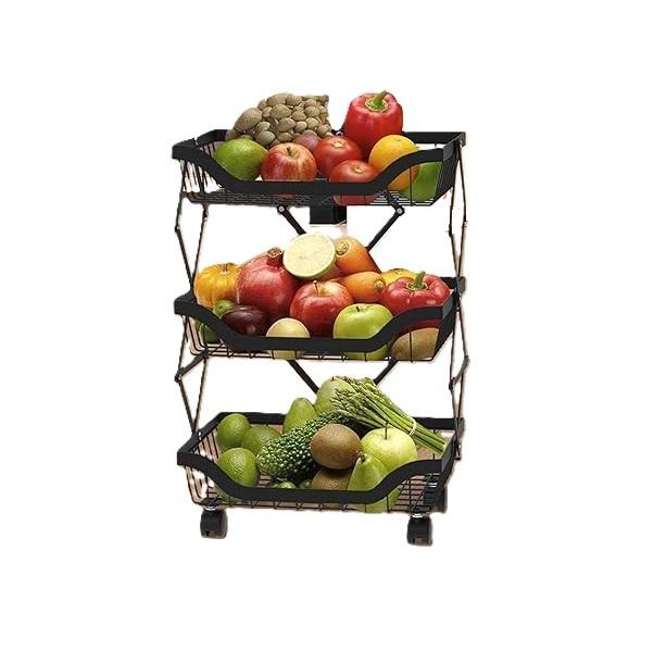 ตะกร้าไม้สำหรับเก็บผลไม้พร้อมตาข่ายโลหะและดีไซน์เป็นวงกลมตู้เก็บของในห้องครัวทันสมัย