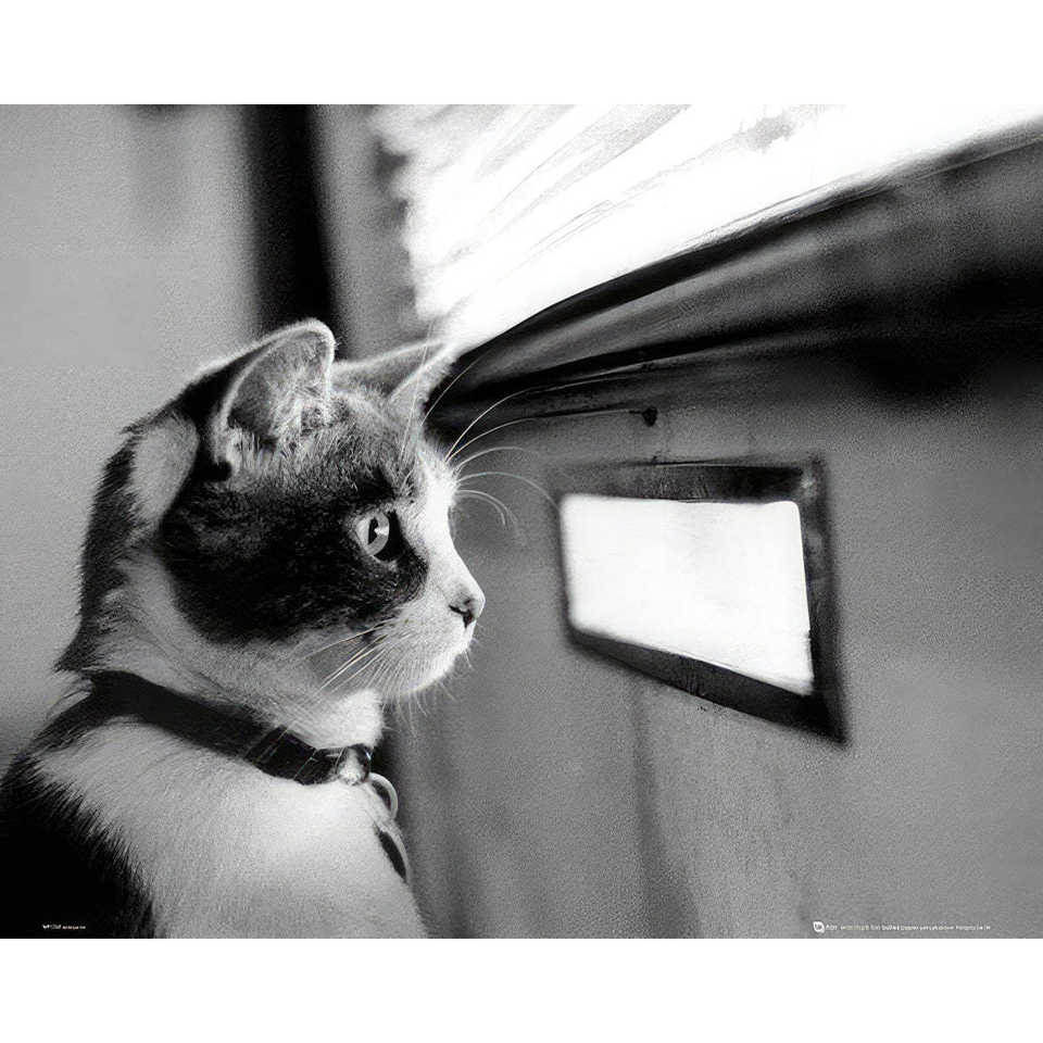ลูกแมวสมัยใหม่อยู่หน้าโปสเตอร์ติดผนังตู้ไปรษณีย์
