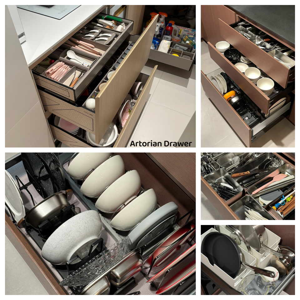 ลิ้นชักสไลด์, ก๊อกน้ำ, หลักการ, มือจับและลูกบิด, ตะกร้าลิ้นชัก, Backsplash, ซูซานขี้เกียจเก็บ, อ่าง