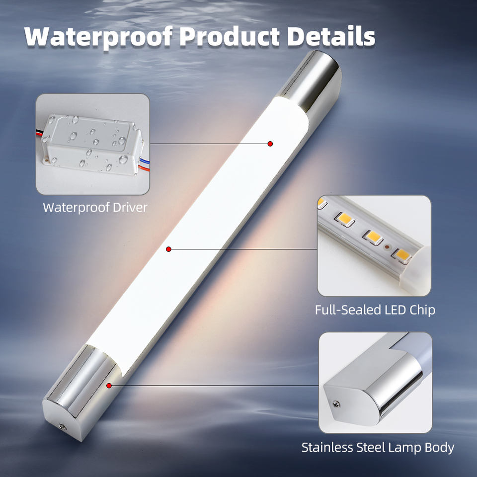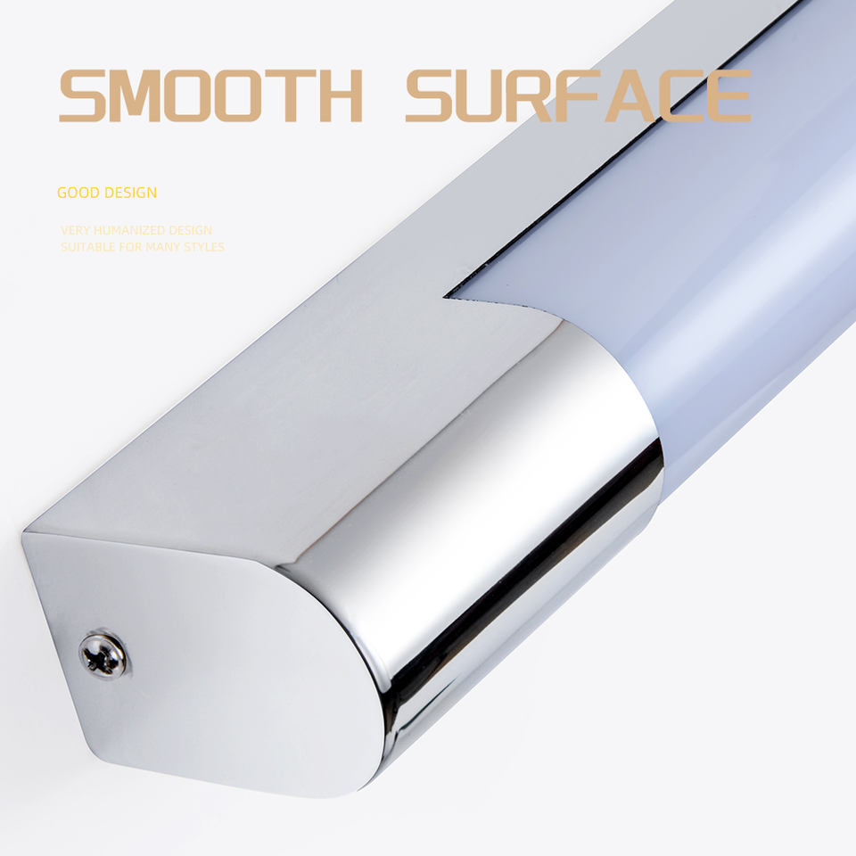 โคมไฟติดผนัง LED ที่ทันสมัยสำหรับใช้ภายในอาคาร โครเมียมขัดเงา IP44 โคมไฟห้องน้ำสำหรับกระจก ดีไซน์เรียบหรู กันน้ำ ให้แสงสว่างสูง CRI 95