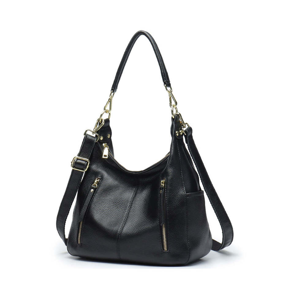 กระเป๋าสะพายไหล่สตรีทันสมัย ผลิตจากหนัง พร้อมสายโซ่ตกแต่งและหูหิ้วที่สะดวกสบายสำหรับการใช้งานประจำวันและพกพาไปทำงาน