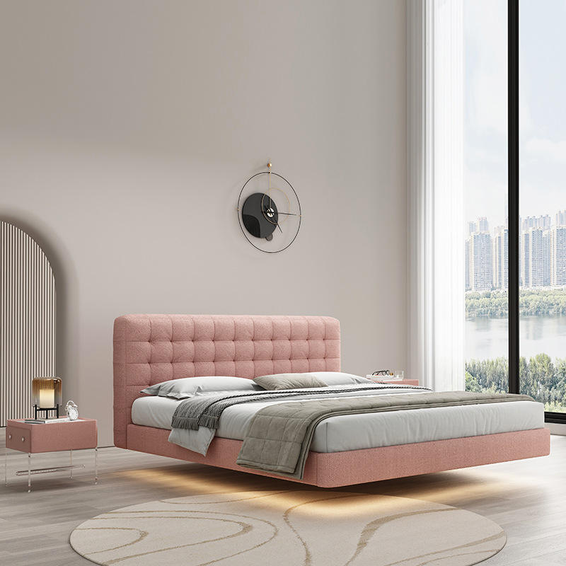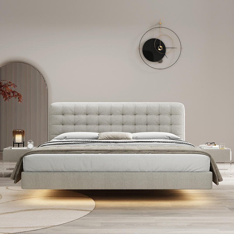 เตียงหนังทันสมัยแบบอิตาลีเรียบง่ายเตียงแต่งงานหรูหราห้องนอนใหญ่เตียงหนังแฟชั่นคู่