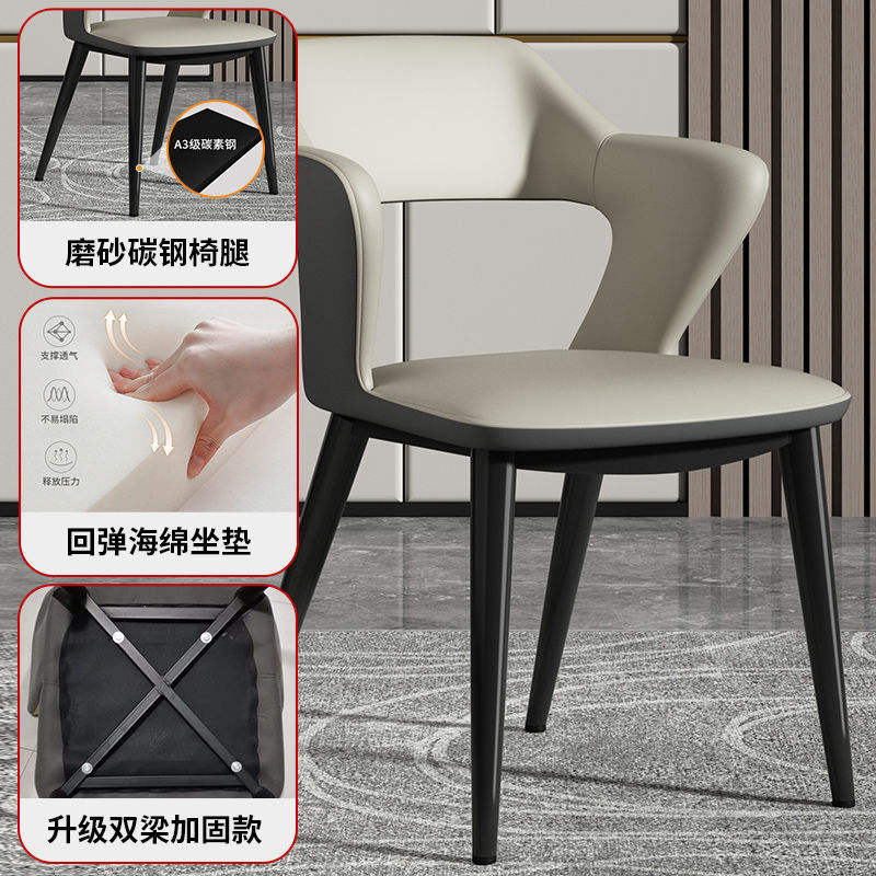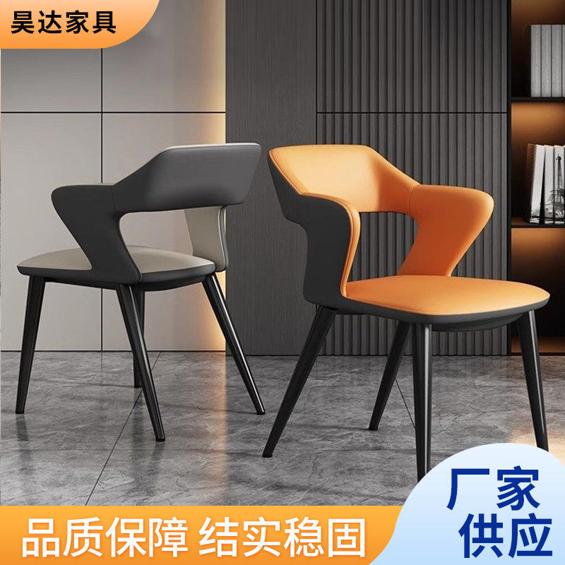 เก้าอี้ทานอาหารหนังสไตล์โมเดิร์น พร้อมที่วางแขนและพนักพิง สำหรับร้านอาหาร โรงแรม ใช้เบาะรองนั่งแบบมีเบาะรองนั่ง ขาสีดำ หุ้มเบาะสีส้ม