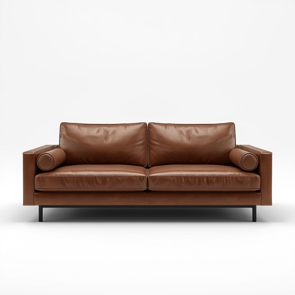 โซฟาหนังแท้สไตล์โมเดิร์น ดีไซน์เรียบหรูยุคกลางศตวรรษ หุ้มด้วยหนังวัวแท้คุณภาพพรีเมียม สำหรับตกแต่งภายในอย่างมีระดับ