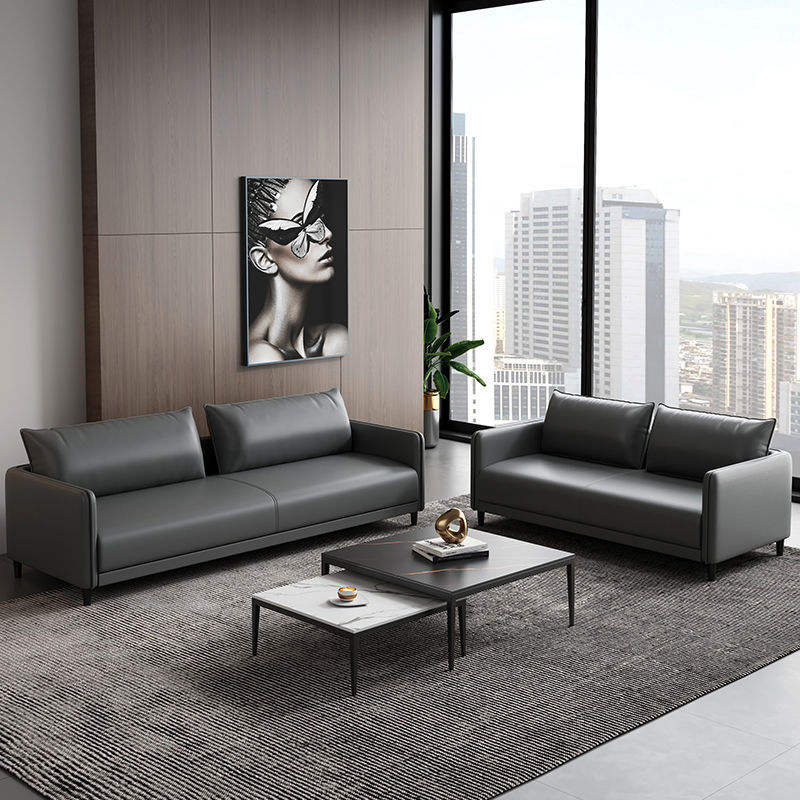 ชุดโซฟาหนังสำนักงานทันสมัยสำหรับพื้นที่รับรองธุรกิจและการประชุม โครงโลหะแข็งแรงทนทาน ใช้ในห้องนั่งเล่นหรือพื้นที่เชิงพาณิชย์