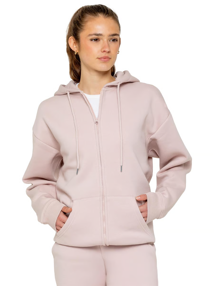 ชุดวอร์มสีชมพูอ่อนแบบมีซิปและชุดวิ่งสไตล์เรียบง่ายเหมาะสำหรับการเดินทางไปยิมหรือพักผ่อน