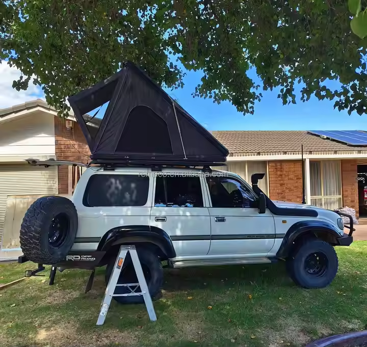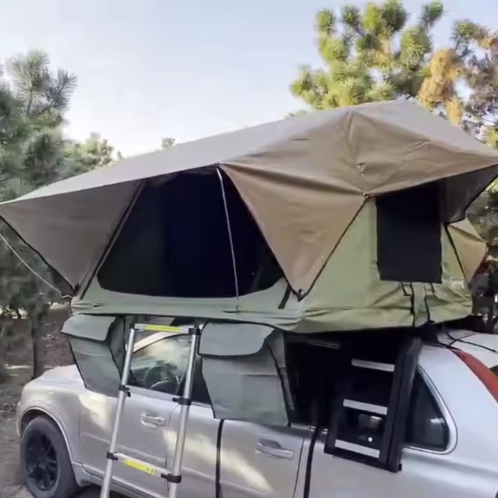 เต็นท์บนหลังคาแบบแข็งน้ำหนักเบาทันสมัยผ้าอ๊อกซ์ฟอร์ดอลูมิเนียมสำหรับตั้งแคมป์บนรถมีหลังคาแบบผนวก
