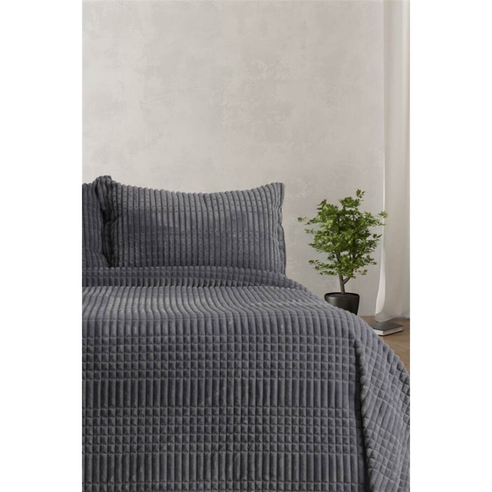 ชุดเครื่องนอนลายเรขาคณิตทันสมัย 3 ชิ้น สีแอนทราไซต์ ผลิตจากโพลีเอสเตอร์ 100% ป้องกันรอยยับ บรรจุกล่อง คอลเลคชั่นผ้าห่มหรูหรา