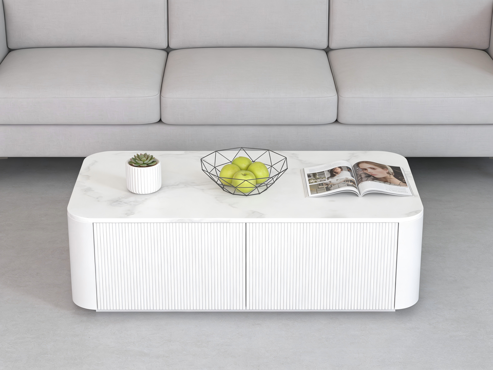 โต๊ะกาแฟไม้ตกแต่งลายโมเดิร์นไลน์ พร้อมท็อปหุ้มลายหินอ่อน PVC สำหรับห้องนั่งเล่น ห้องรับประทานอาหาร โรงแรม วิลล่า อพาร์ตเมนต์