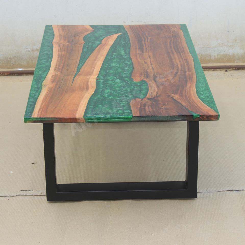 โต๊ะกาแฟทำจากเรซินอีพ็อกซี่สีเขียวทำจากไม้อะคาเซียแบบสดทันสมัยพร้อมเหล็กเหล็กโลหะทนทานและแข็งแรงออกแบบได้ตามต้องการสำหรับห้องนั่งเล่น