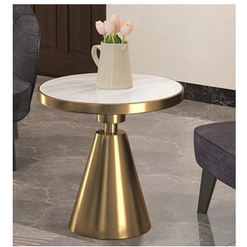 โต๊ะทรงนอร์ดิกทันสมัย เฟอร์นิเจอร์หรูหรา โต๊ะข้างทรงกลมหน้าหินอ่อน สำหรับห้องนั่งเล่น โรงแรม สำนักงาน โต๊ะชุบทอง