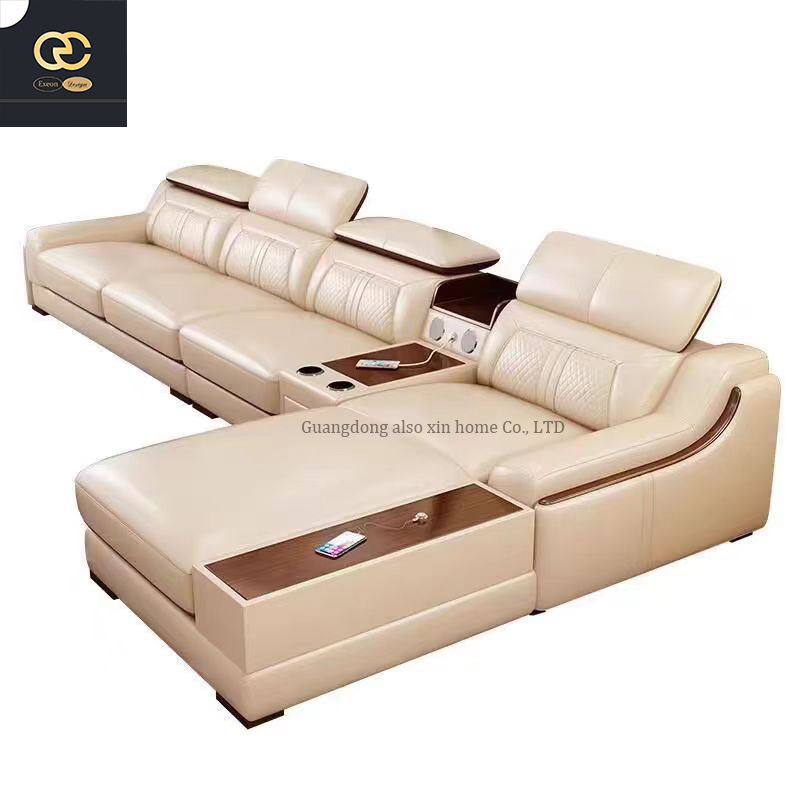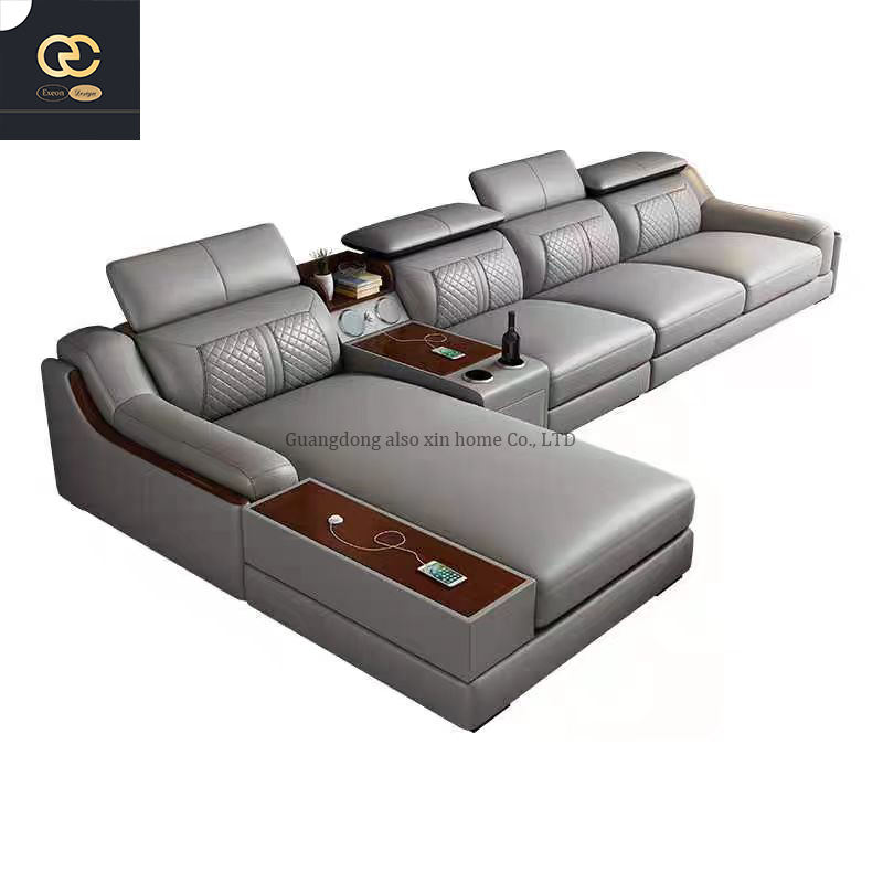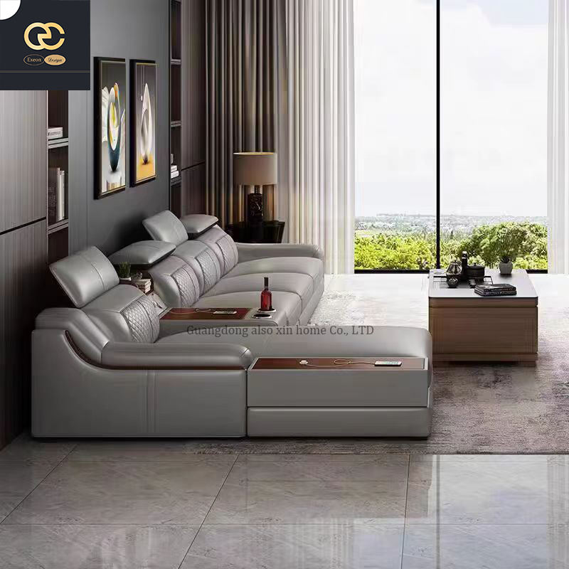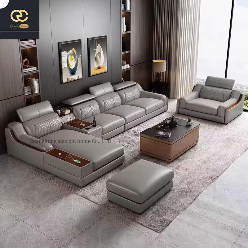 โซฟาหนังรูปตัว L สำหรับวิลล่าห้องนั่งเล่นการออกแบบที่ทันสมัยมีพนักพิงของตกแต่งดีไซน์หรูหรา