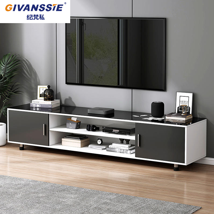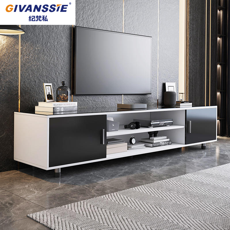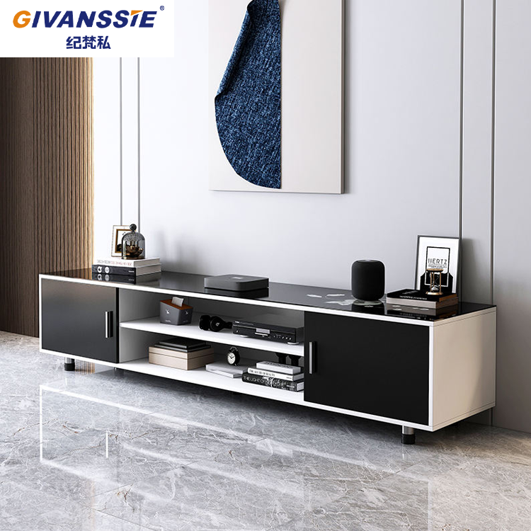 ตู้วางทีวีไม้สำหรับห้องนั่งเล่นสมัยใหม่ พร้อมลิ้นชักเก็บของแบบ LED และชั้นวางปรับระดับได้ - เฟอร์นิเจอร์ไม้รักษ์โลก