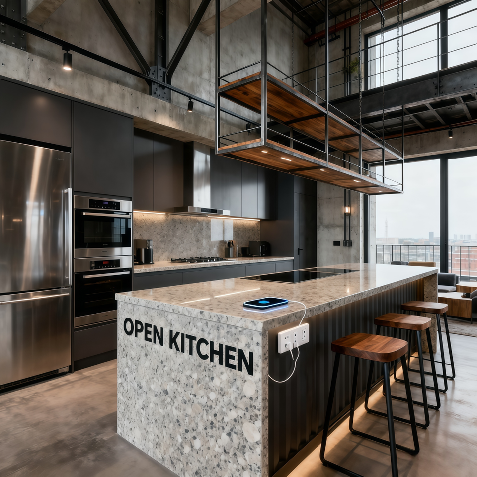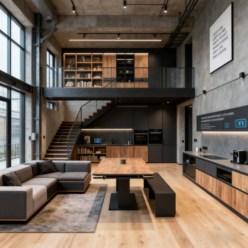 การออกแบบอพาร์ตเมนต์สไตล์ลอฟท์สมัยใหม่ ที่ใช้ประโยชน์จากเพดานสูงและโครงสร้างแบบเปิดโล่ง
