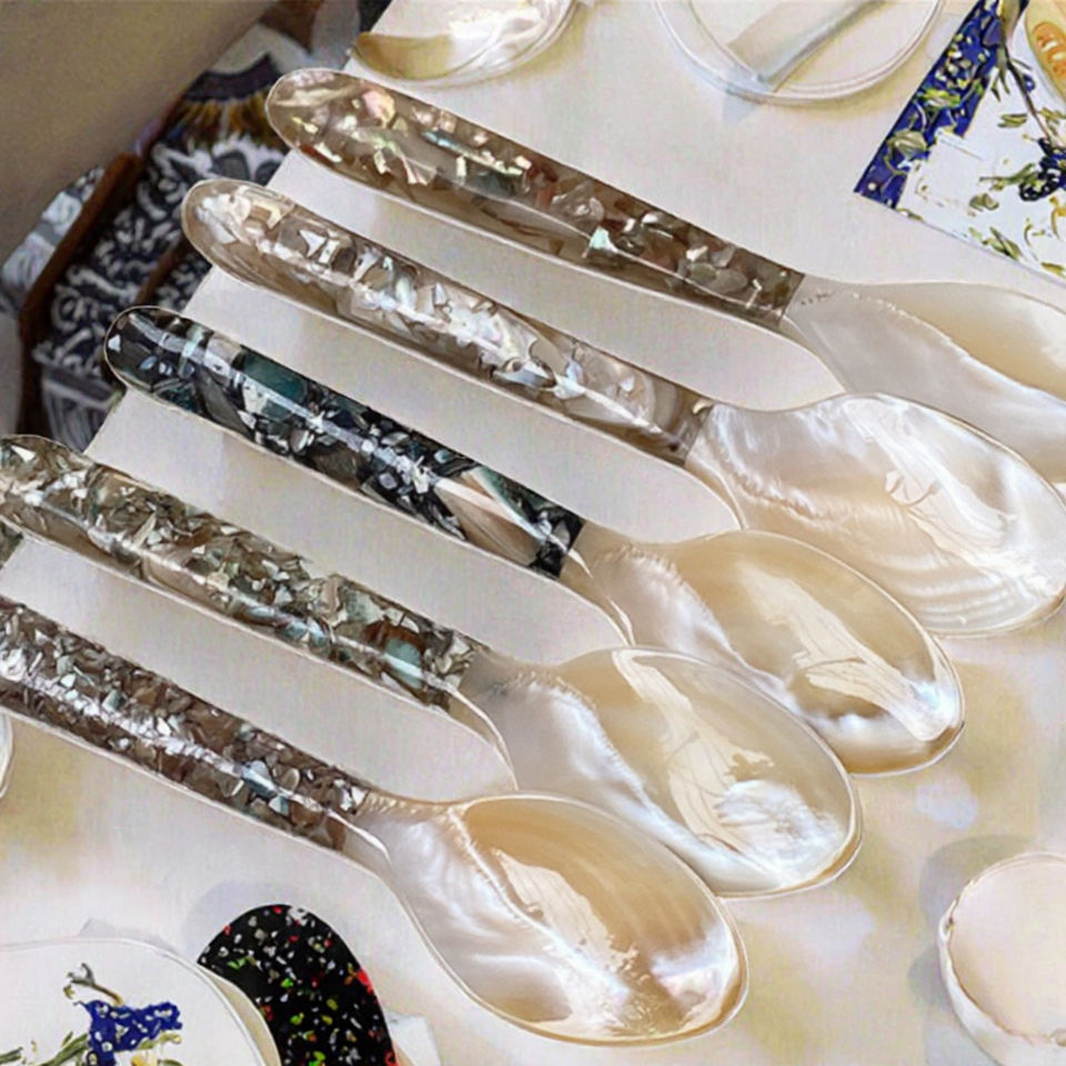 ช้อนขนมหวานด้ามยาวลายดอกไม้ ชุบทอง วัสดุออร์แกนิก เป็นมิตรกับสิ่งแวดล้อม ดีไซน์สร้างสรรค์ สำหรับอาหารตะวันตก
