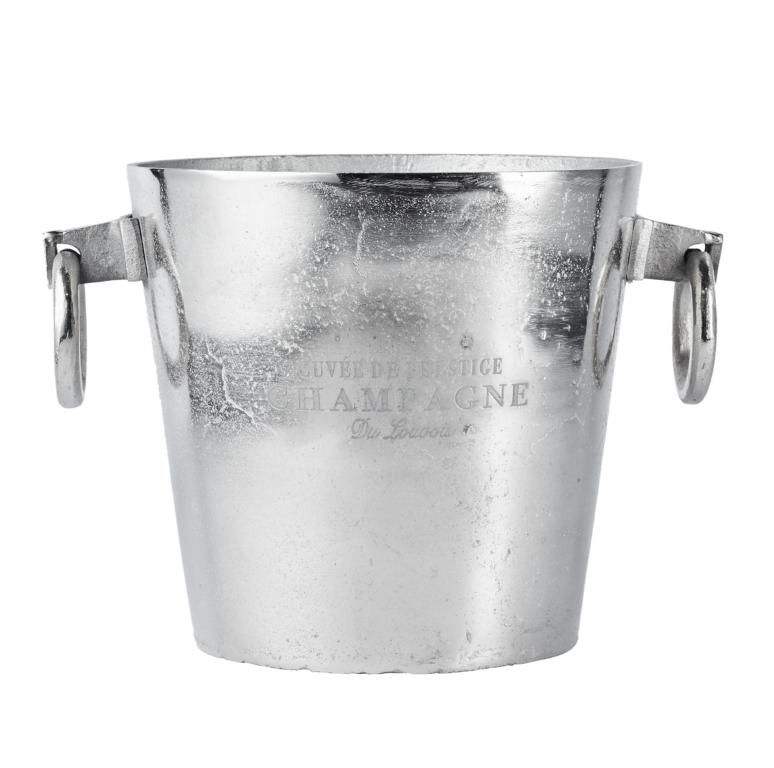 ถังน้ำแข็งแชมเปญสีเงินดีไซน์ทันสมัยพร้อมฝาปิด อุปกรณ์บาร์ ถังแช่ไวน์อะลูมิเนียมแบบไม่มีหูจับ