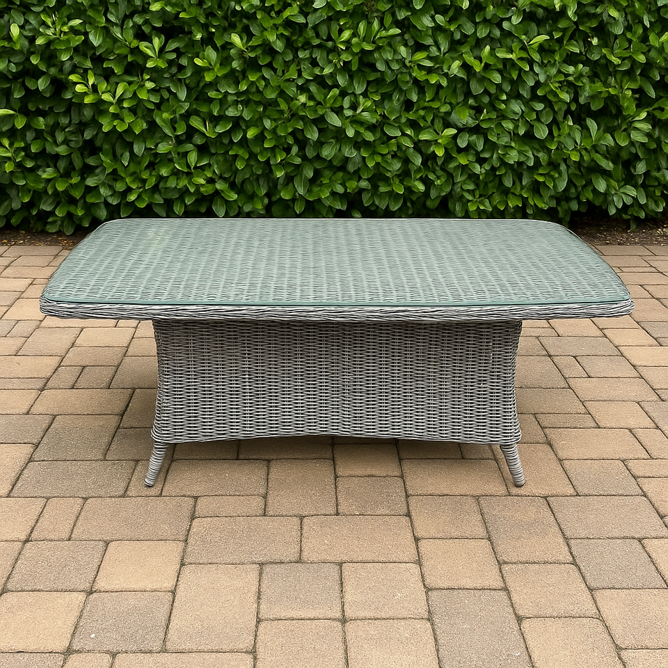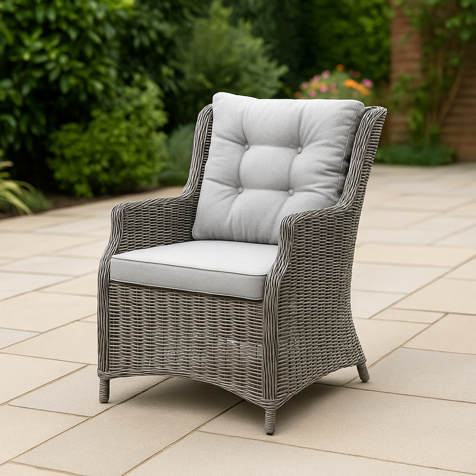 ชุดรับประทานอาหารหวาย PE กลางแจ้งหรูหราทันสมัยเฟอร์นิเจอร์แสนสบายเบาะรองนั่งแข็งแรงสำหรับบ้านไร่ในสวน