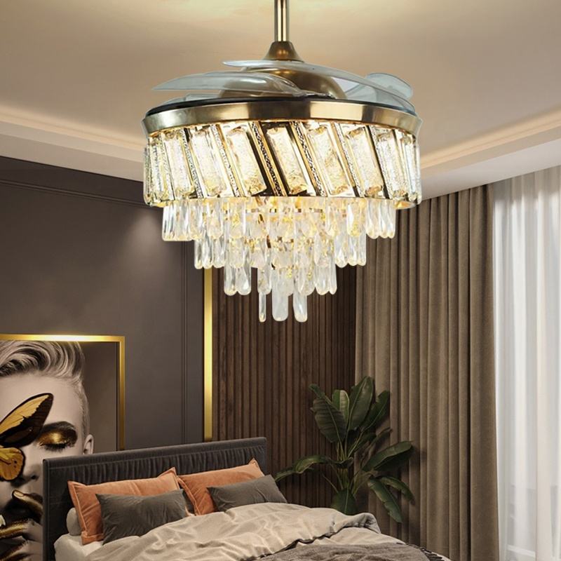 พัดลมเพดาน LED 42นิ้ว6-Plade พับเก็บได้หรูหราทันสมัยพร้อมไฟและรีโมทคอนโทรลสำหรับห้องนอน
