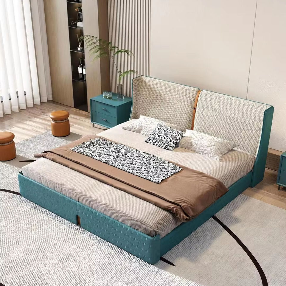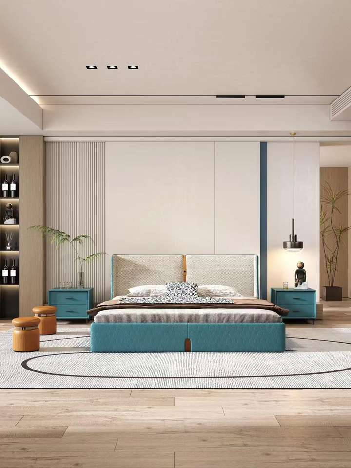 ชุดเฟอร์นิเจอร์ห้องนอนหรูหราทันสมัยโครงไม้แข็งเตียงควีนไซส์ใหญ่ใหญ่ผ้ากำมะหยี่นุ่มใช้ในบ้านโรงแรม