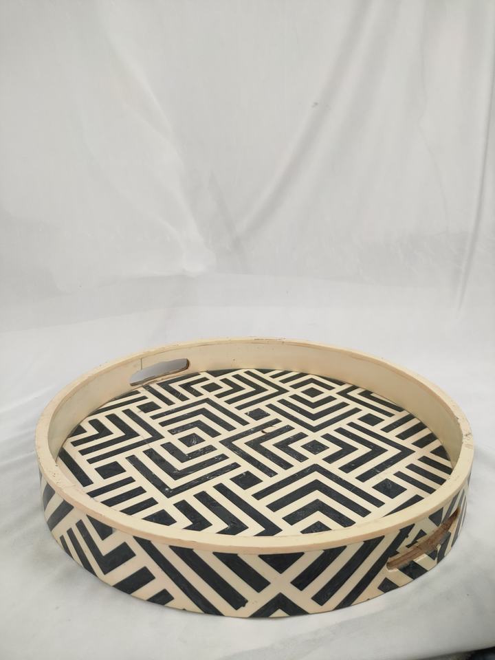 Modern Luxury Bone Inlay Wood Serving Tray Mother of Pearl and Bone Inlay Tray From India for Food Serving