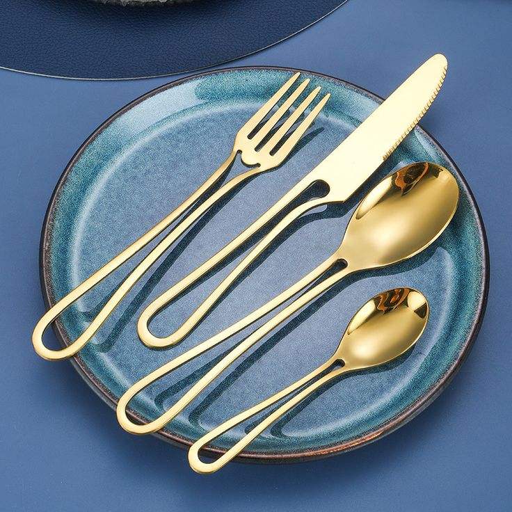 ชุดช้อนส้อมทองเหลืองสแตนเลสสตีลสุดหรูทันสมัย พร้อมผิวสัมผัสแบบด้าน ทนทานและเหมาะสำหรับการตกแต่งบ้านสไตล์คลาสสิก