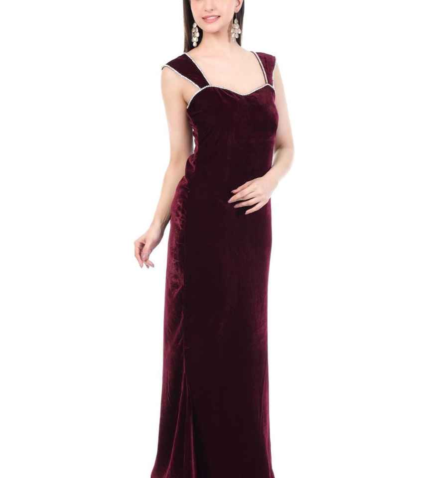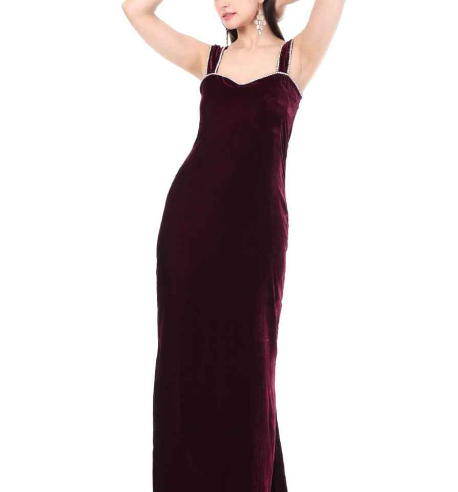 เดรสยาวกำมะหยี่สีแดงเบอร์กันดีสุดหรูทันสมัย | ชุดราตรียาวทรงตรง | คอเสื้อแบบ Sweetheart เอวทรงเอ็มไพร์ เป็นมิตรกับสิ่งแวดล้อม