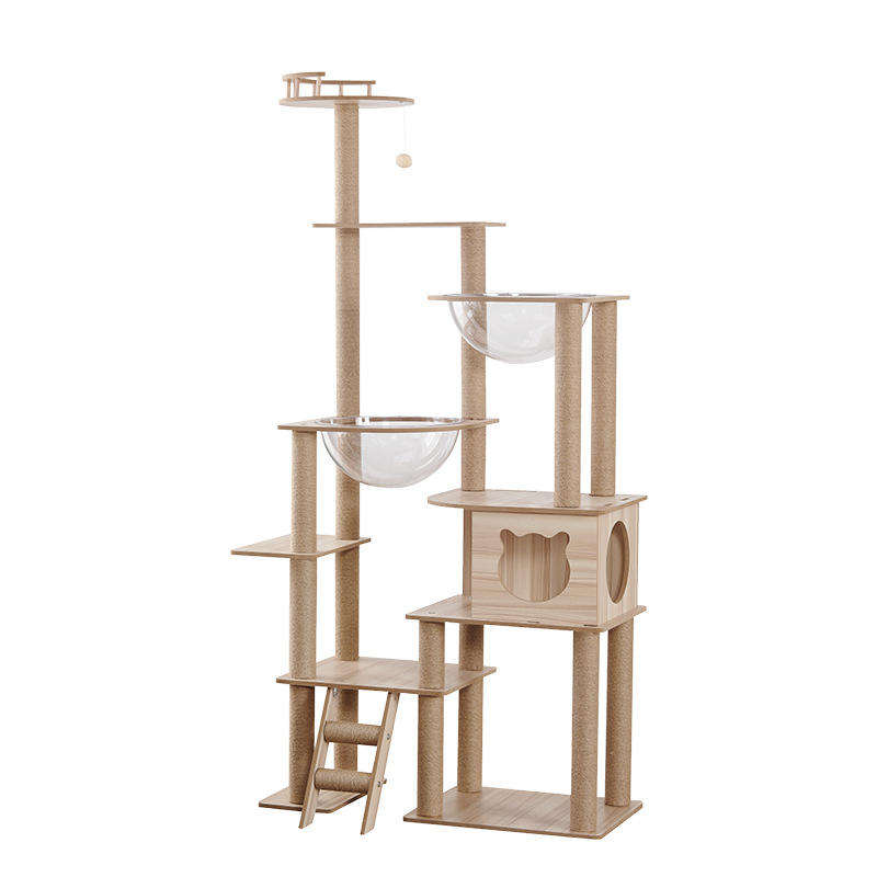 ที่ปีนป่ายสำหรับแมวสุดหรูทันสมัย ดีไซน์ไม้คลาสสิก พร้อมที่กระโดดทำจากเส้นใยไซซอล