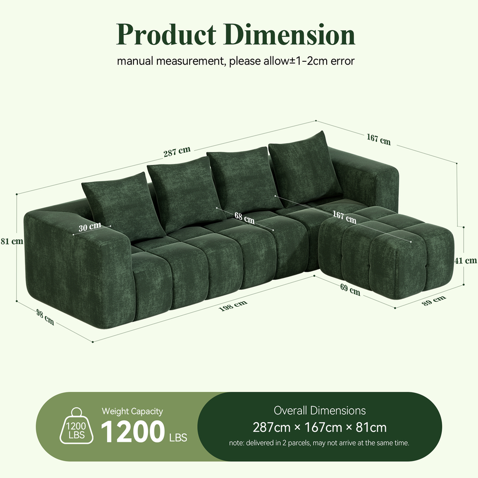 โซฟาโมเดิร์นหรูหราทรงตัวแอลแบบแยกส่วน รุ่น Meroow MS2 Tofu Block หุ้มผ้ากำมะหยี่แบบทัฟท์ ชุดโซฟาแบบไม่มีโครงไม้ บีบอัดเงียบไร้เสียง
