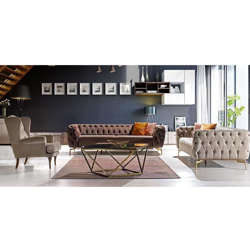 ชุดโซฟาเชสเตอร์ฟิลด์หรูหราทันสมัยเฟอร์นิเจอร์ไม้แปลงสภาพสำหรับใช้ในสำนักงานหรูหรา