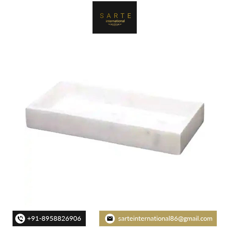 ถาดเสิร์ฟหินอ่อนสีขาวธรรมชาติพร้อมลวดลายเสิร์ฟอาหารสำหรับบ้านร้านอาหารโรงแรมหรูหราทันสมัยปรับขนาดได้ตามต้องการ