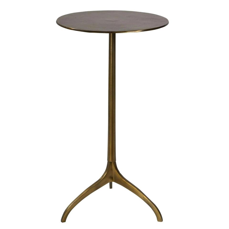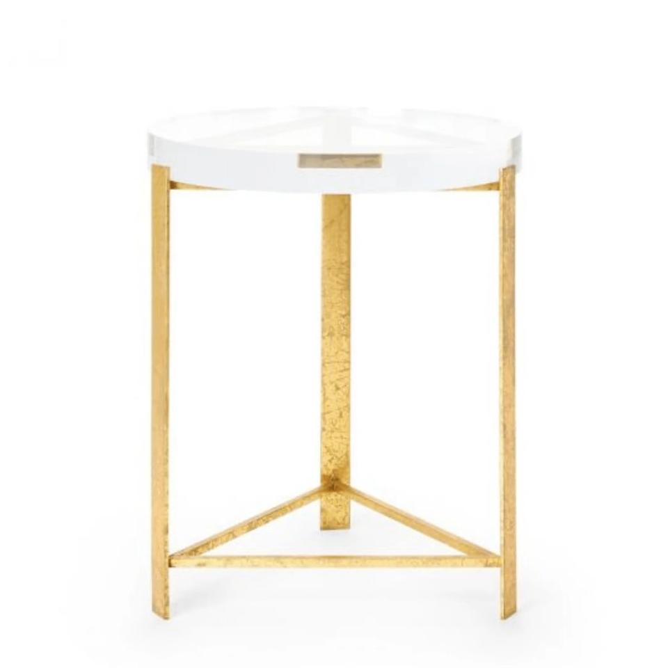 โต๊ะข้างตกแต่งสไตล์โมเดิร์นหรูหรา หน้าโต๊ะโลหะเคลือบเงา ฐานโลหะสีทองมีลวดลาย โต๊ะทรงสูงสำหรับห้องนั่งเล่นและห้องนอน