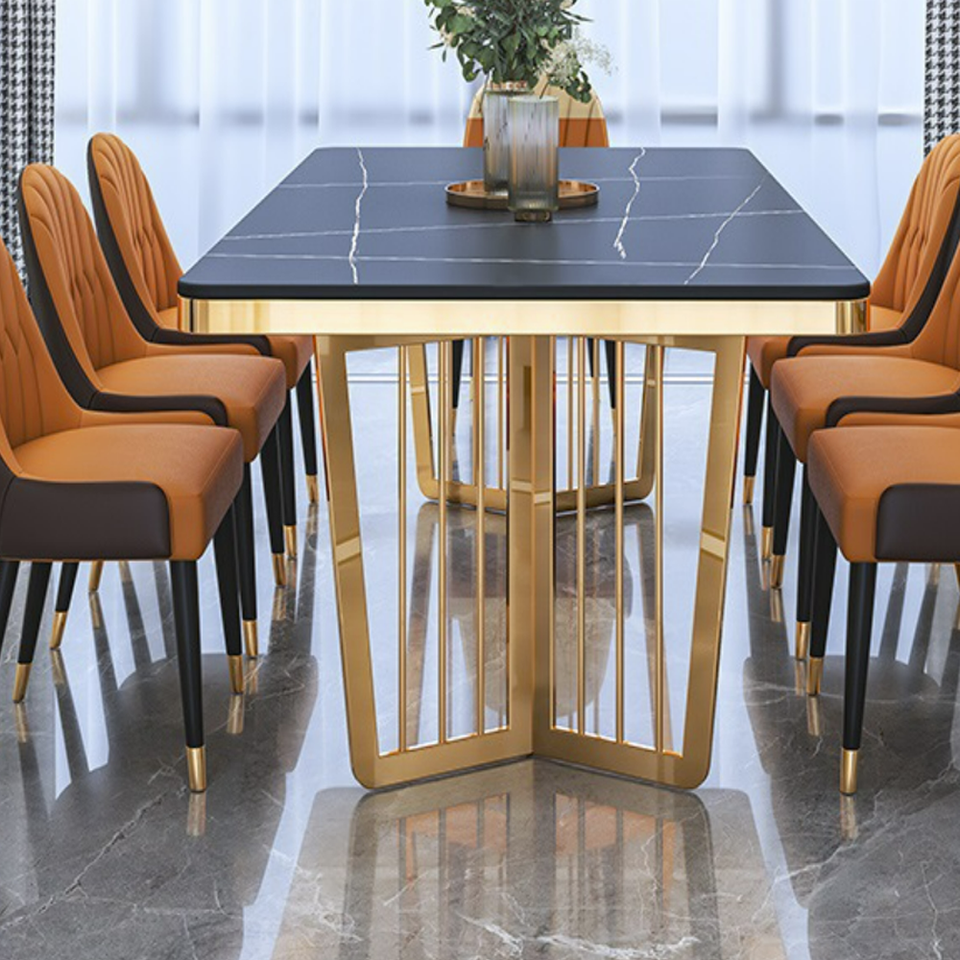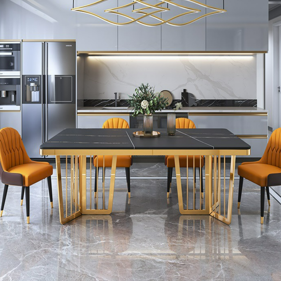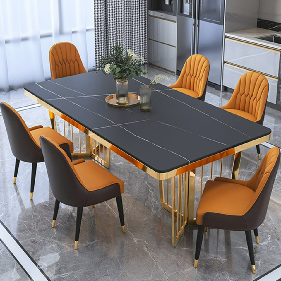 ชุดโต๊ะอาหาร6เก้าอี้พร้อมเฟอร์นิเจอร์ห้องรับประทานอาหารขาเหล็กคาร์บอน