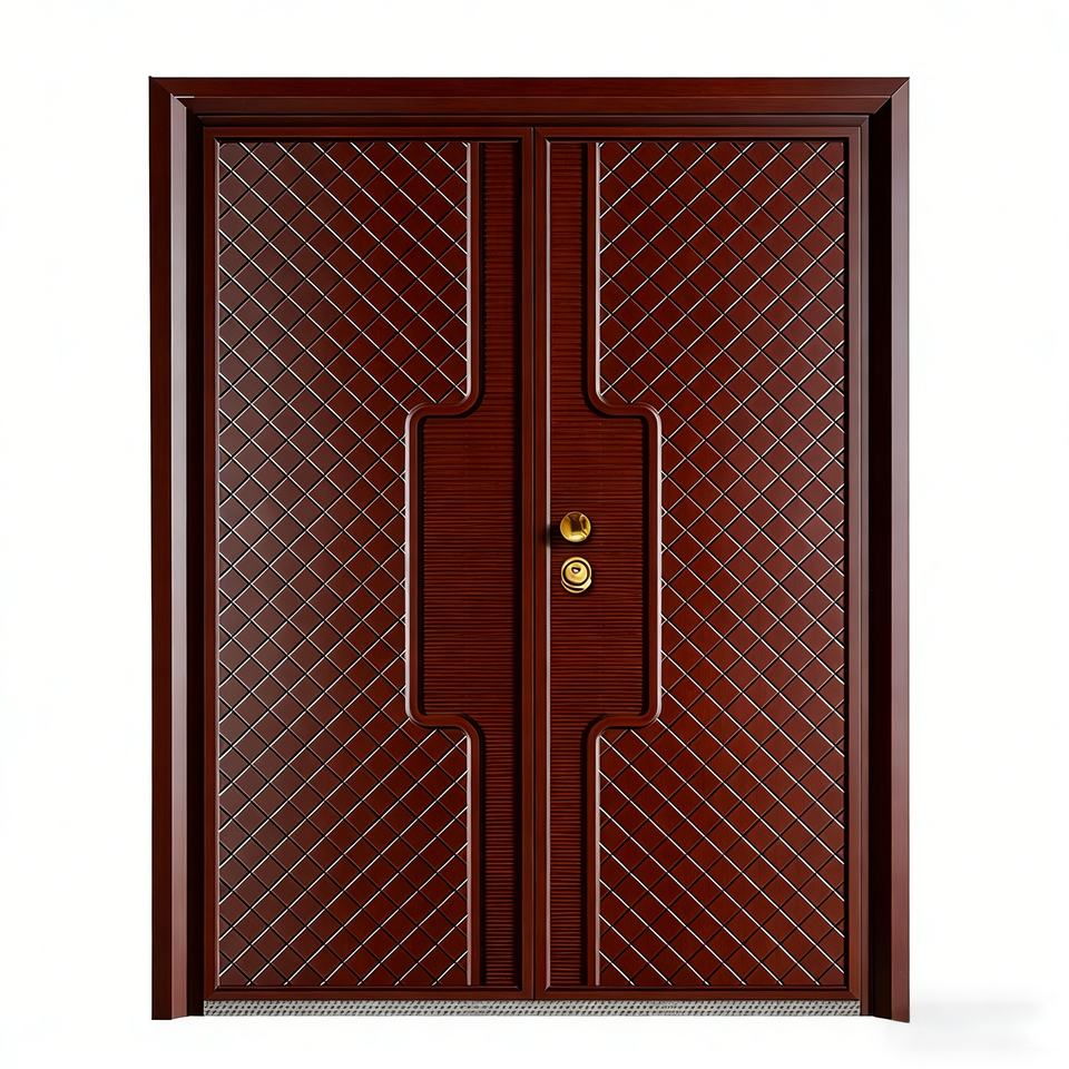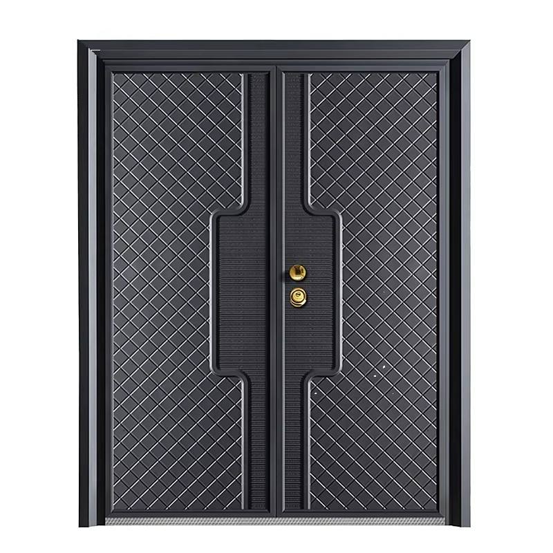 ประตูหน้าบ้านสองชั้นนิรภัยสุดหรูทันสมัย ประตูเหล็กกันขโมยคุณภาพสูงสำหรับบ้านวิลล่าภายนอก