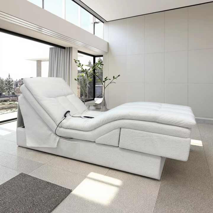 เตียงโซฟาไฟฟ้าปรับเอนได้แบบพกพาผ้าขนแกะเนื้อนุ่มยืดได้พกพาได้สำหรับห้องนั่งเล่นโรงแรมหรูหราทันสมัย