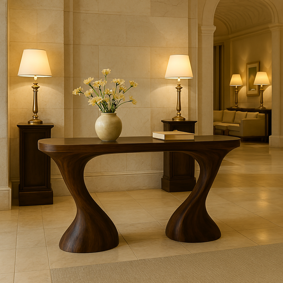 Modern Luxury Entrance Console Table Shaped Solid Wood Movable Artistic Farmhouse Entrance Table Sculptural Console Table