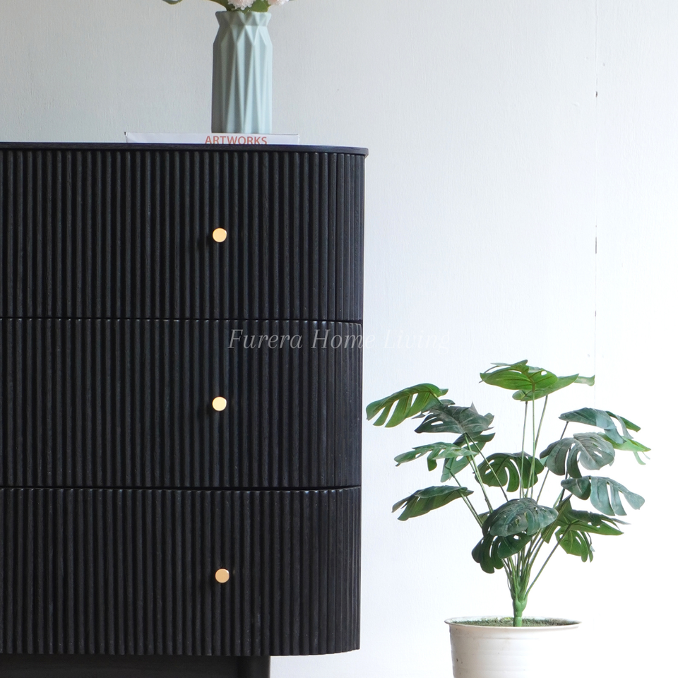 ตู้วางทีวีไม้สักแท้สไตล์ยุโรปหรูหราทันสมัยของเฟลิกซ์ สีไม้ธรรมชาติ ดีไซน์มีสไตล์ 3 ลิ้นชัก สำหรับห้องนั่งเล่น