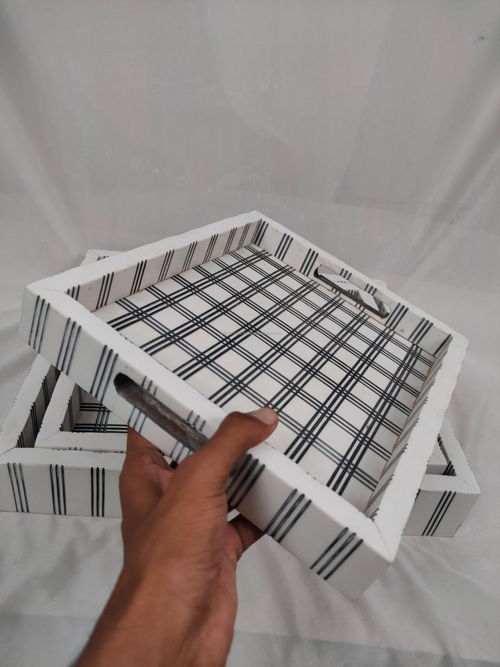 ถาดเสิร์ฟสี่เหลี่ยมลายไม้ฝังลายดอกไม้ดีไซน์หรูหราทันสมัยพร้อมระบบสัมผัส สำหรับตกแต่งบ้าน